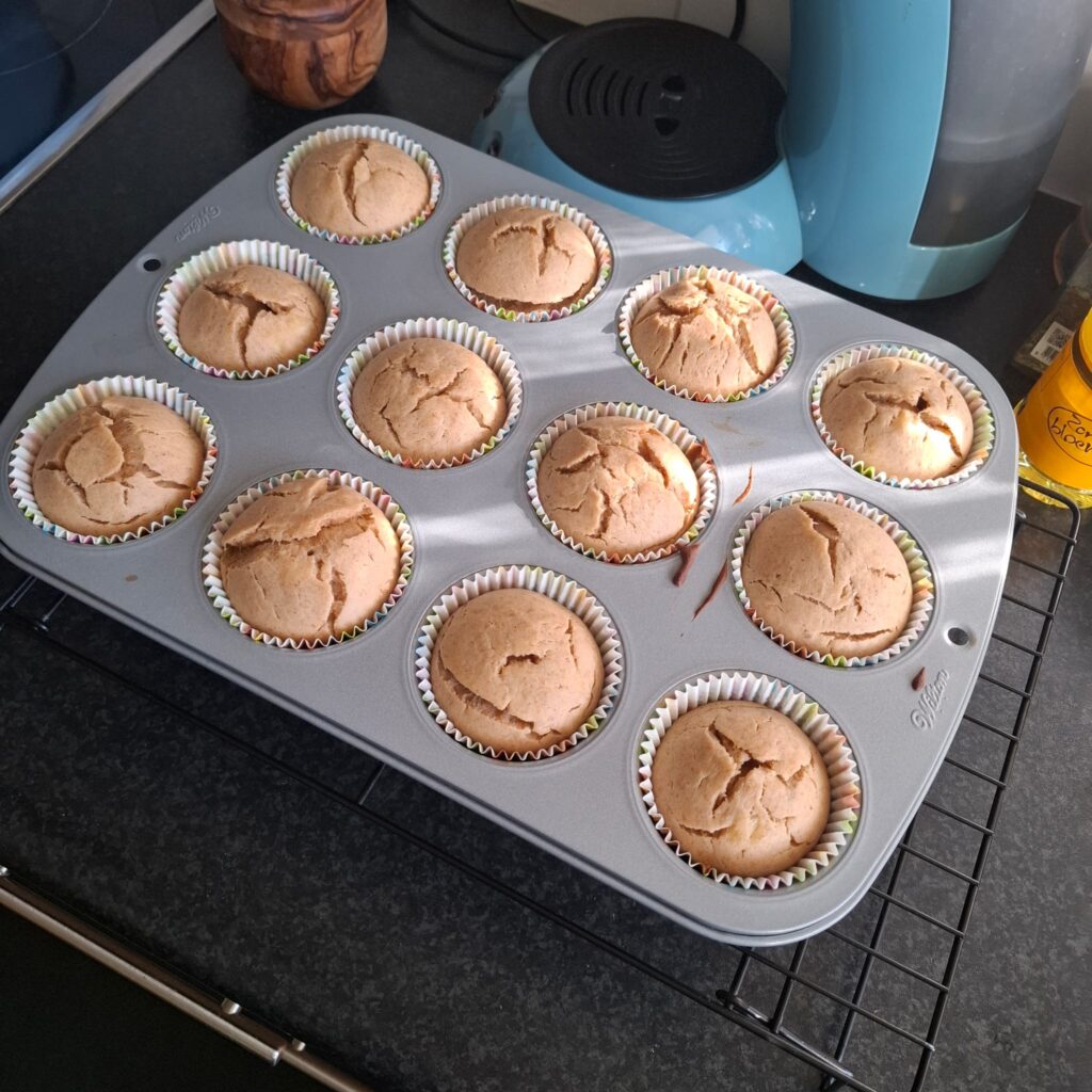 Ik bakte ze 22 minuten in de oven, waarna ze er best wel prima uitzagen! Het was alleen ingewikkeld om in te schatten of ze gaar waren, want door de banaan zat er iets aan de satéprikker die ik erin stak. Maar het was niet nat, dus ik besloot dat het wel goed zou zijn.