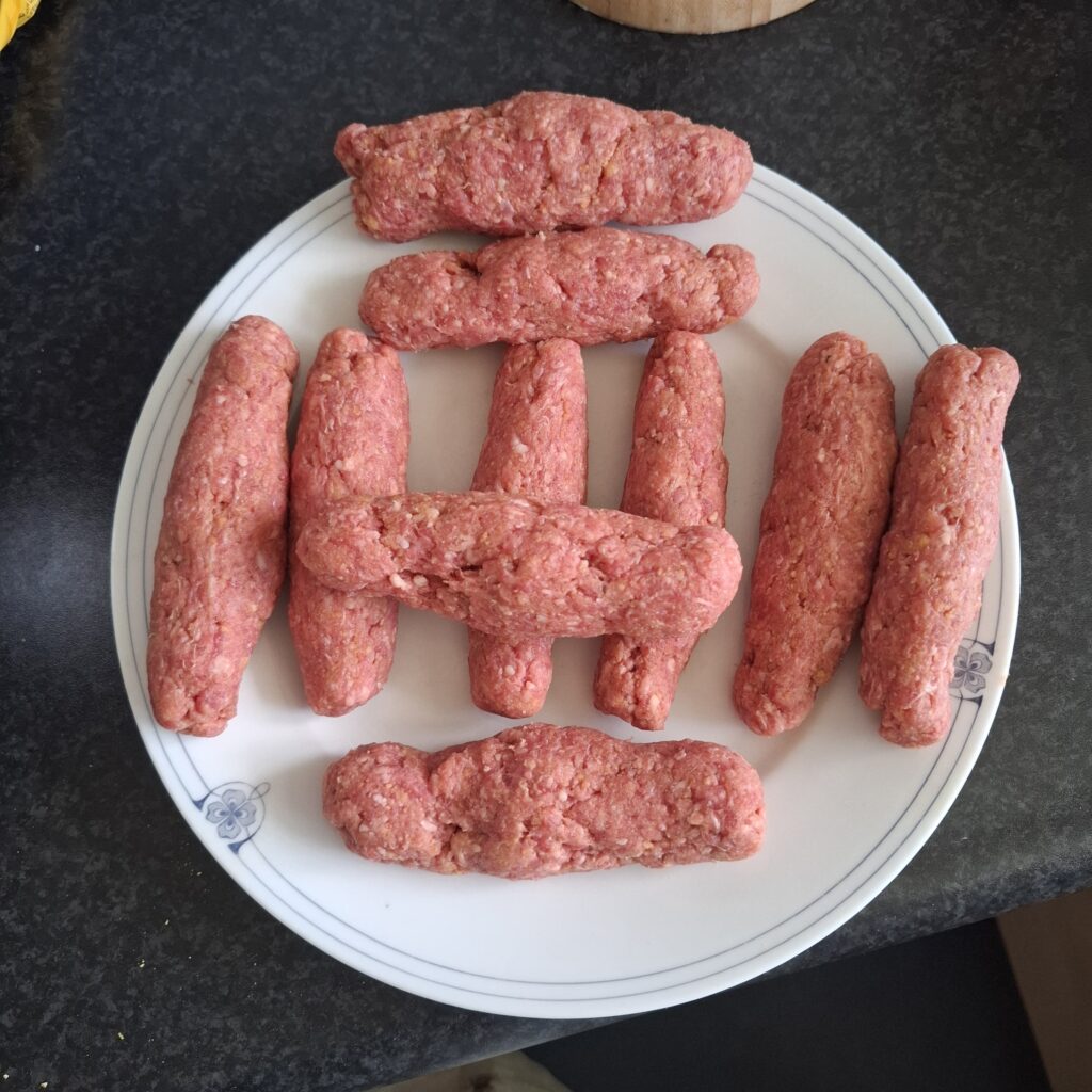 Die bestaat uit rundergehakt, ei, paneermeel, mosterd, worcestersaus, speculaaskruiden, nootmuskaat en zout. Dit kneed je door elkaar, waarna je er 10 staven van maakt. Ze moeten ongeveer de lengte hebben van de bladerdeegplakjes.